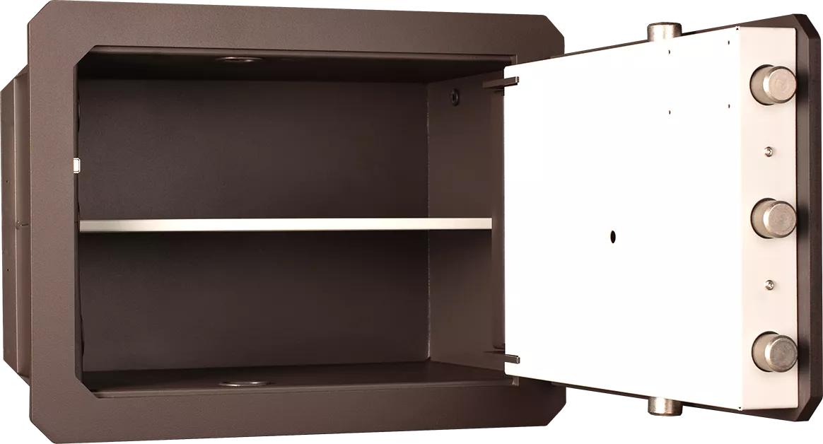 Существенное достоинство сейфа Olle 1002L25 – его нельзя вынести из помещения: ведь он вмонтирован в стену наглухо, и извлечь его оттуда взломщик не сумеет, даже если и обнаружит. А взломать дверь – занятие крайне сложное и шумное, которое может занять часы, и за это время, естественно, в дом подоспеет полиция – исходя из этих соображений воры вовсе не станут связываться с трудоёмким и опасным взломом. Особенно с учётом нестандартной системы блокировок двери, специально разработанной компанией OLLE.
